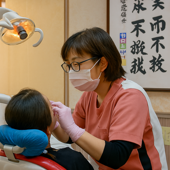 エピソード ある夜、恵那市から「歯が痛くてどうしようもない」と 泣きそうな声で急患のお電話をいただきました。 夜遅い時間でしたが、診療を行うことができ、 その後ご家族全員で通院していただくようになりました。 この経験は「困ったときに頼れる歯科医院」 であることの大切さを改めて感じさせてくれました。 水谷歯科医院は、地域の皆さまに安心して頼っていただける 存在でありたいと願っています。 歯科治療は、誰にとっても少なからず緊張や不安を伴うものです。だからこそ、私は「心をほぐす会話」を大切にしています。 たとえば、ドジャースの話題で盛り上がったり、ちょっとした世間話で笑顔がこぼれたり。そんな時間が、患者さんの気持ちを和らげるきっかけになると信じています。 施術に入ると、麻酔も抜歯も“知らぬ間に終わっていた”と驚かれることがよくあります。数秒で終わるようなスピードと正確さは、長年の経験と技術の積み重ねです。 ですが、私が何より大切にしているのは「目と手と口」でのコミュニケーション。目で患者さんの表情を読み、手で安心感を伝え、口で優しく声をかける——その三位一体が、私の診療スタイルです。 どんな方でも、安心して来院できる場所でありたい。心と心でつながる歯科医院を、これからも目指していきます。 40年の臨床生活において一つだけ誇れるものがございます いやがるお子さんでも、急患さんでも、怖がり屋さんでも いかなる場面でも どこまでも根気よく、穏やかに、諦めず対応させて頂いています 土岐市 水谷歯科医院では、歯周病予防や審美歯科にも対応できるよう、 診療室には国家資格を持つ歯科衛生士が常に配属されています。 もちろん「痛みを止めたい」「急ぎで治したい」という方にも全力で対応いたします。 ただ私たちの最終目標は、口腔内全体をケアし、 患者さまが健康的で幸せな生活を送れるようにすることです。 診療は「1口腔単位」でとらえていますので、 簡単に詰めるだけ、入れ歯だけを入れるといった処置よりも、 少しお時間をいただくことがあります。 それでも「長く安心して暮らせる口の健康」を大切にしています。 🦷 当院の得意分野水谷歯科医院では、以下の分野を中心に、痛みの少ない治療と丁寧な説明を心がけています。