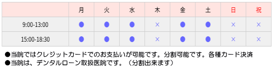 Q 緊急処置だけしたいのですが A当院の方針としてただ痛みを止めるだけとか抜いたら終わりという患者さんにおいては、 一人一人口腔内全体の現症の検査などをベースに診療方針を組み立てていきますので、 その場でやらさせては頂きますが、診療体系が合わないと感ずるかも知れません。 将来の事を考えるときちんと治療される事をお勧めします。 長期的な予防も出来る歯科医院です。 Q 夜の診療をやっている所が少ないのですが A 私も勤務の時等に夜8時9時までやっていた経験はありますが、 ドクターとて生身の人間ですので、夜は心身ともに負荷がかかり、スタッフの充実も難しいのが現状です。 寧ろ通常医療機関がやっている診療時間帯に緊急でない時にも、時間がある時にお通いになられ予防的観点で臨まれた方が得策かと思います。 それには「早期発見・早期治療」が一番大切でしょうね。 Q流行ウイルスなど心配ですが A 院内感染防止対策は以前よりできています。 滅菌・消毒・各自医療用手袋・アルコール消毒・待合室空気洗浄機・加湿器・検温計 各自タオル・次亜塩素酸消毒など 放置して置いたり、定期検診せずに進行する方が得策ではありません。 むしろ我々医療従事者の方が手洗い・うがいの徹底で健康管理しています。 ご安心くださいね。 |