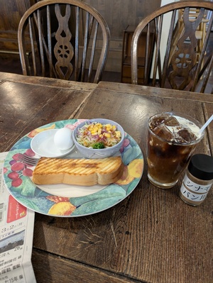 朝の光に包まれたテーブルで、ゆっくりとトーストをかじる時間。それだけで、心の奥に小さな余白が生まれる。 サラダの彩り、ゆで卵の白さ、氷の音が静かに溶けていくアイスコーヒー。どれも特別ではないのに、なぜか“今日を始めていいんだ”と思わせてくれる。 新聞をめくる音が、店内の静けさに溶けていく。慌ただしい日々の中で、こういう“何もしない時間”こそが、いちばんの栄養なのかもしれない。 キャビンさんのモーニングは、心を整えるための小さな休憩所のようだ。